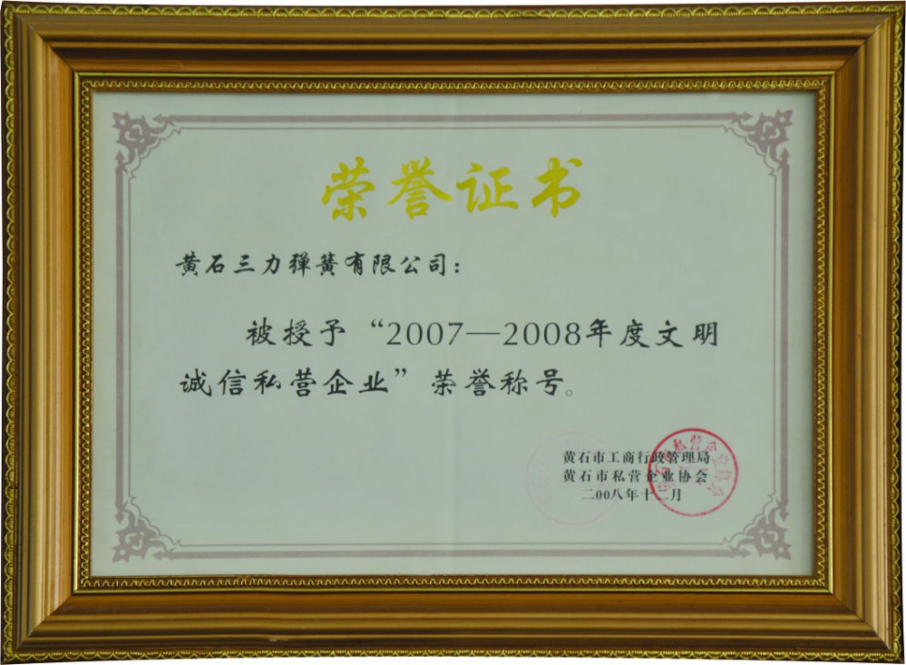 三力彈簧榮譽(yù)證書